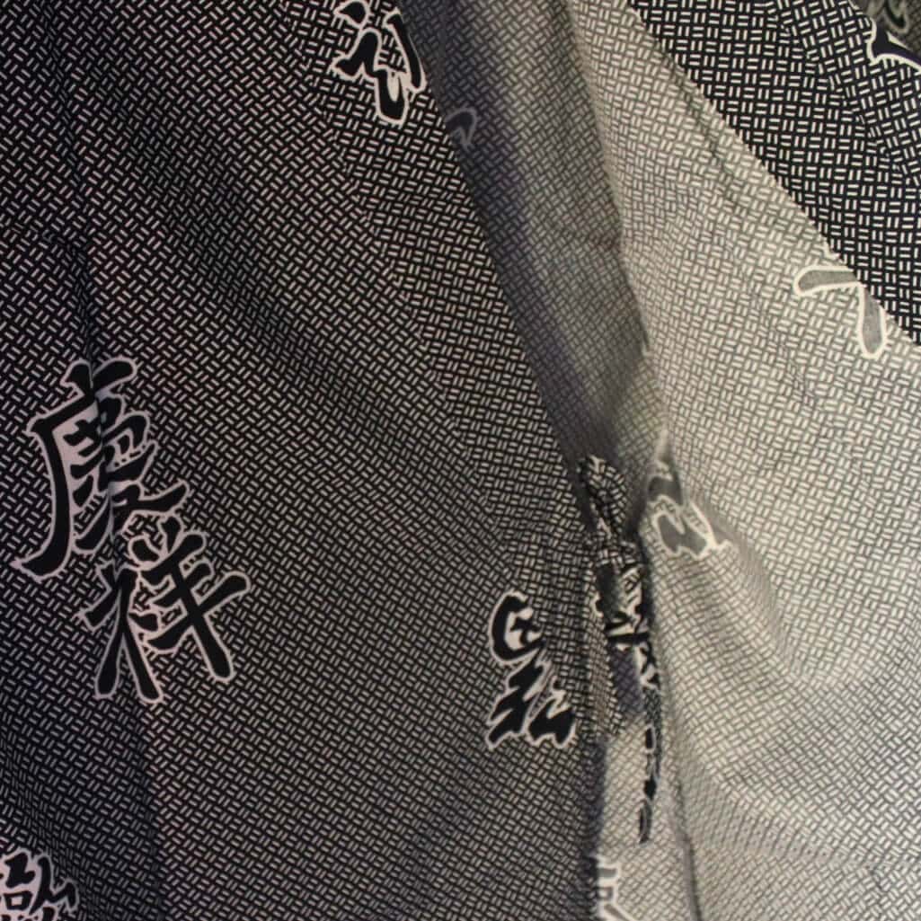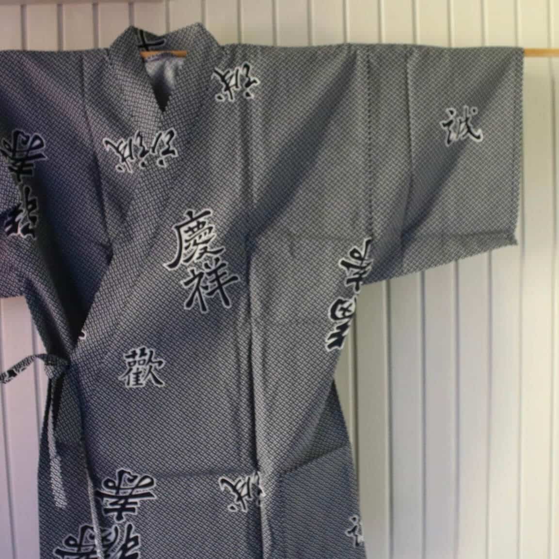Jackan knyts i sidan, både vänster insida och höger utsida.