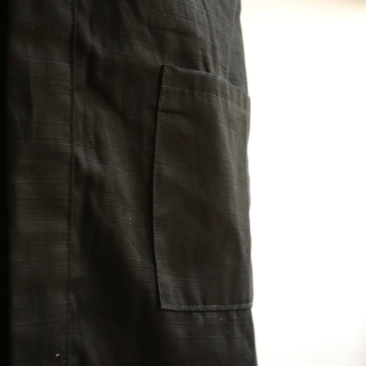 Färgen är svart och materialet är bomull och shantung som är en typ av siden.