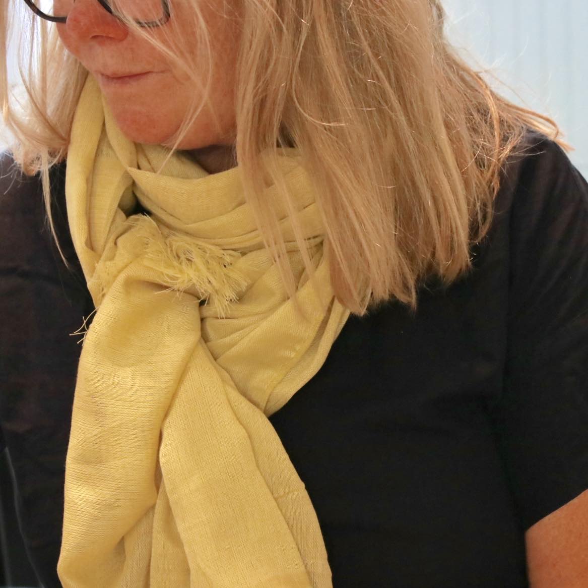 En sjal eller halsduk är också en filt när du vill sitta på en sten. Eller kanske tom en handduk om du får för dig att ta ett dopp?!