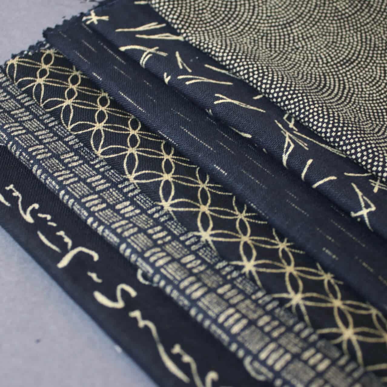 Det kanske är så att du funderar på hur kvaliten är på de japanska tyger jag säljer, då är detta ett alternativ också. Varje bit är ca 25×20 cm och det är sex bitar i en förpackning. De är en blandning av tyger som passar väldigt bra ihop, samma blå nyanser och samma kvalitet och grovhet. Någon kan ha tagit slut på lagret. Bor du i Stockholm kan du också besöka lagershopen för att se dem live.